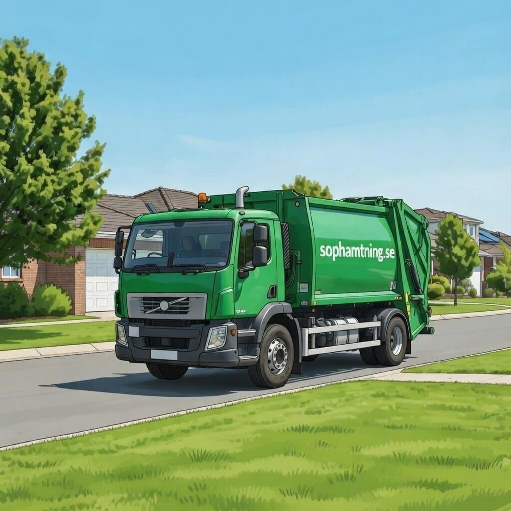 Vi hämtar allt avfall (förutom från hushållens soprum) och kör till respektive avfallsanläggning.